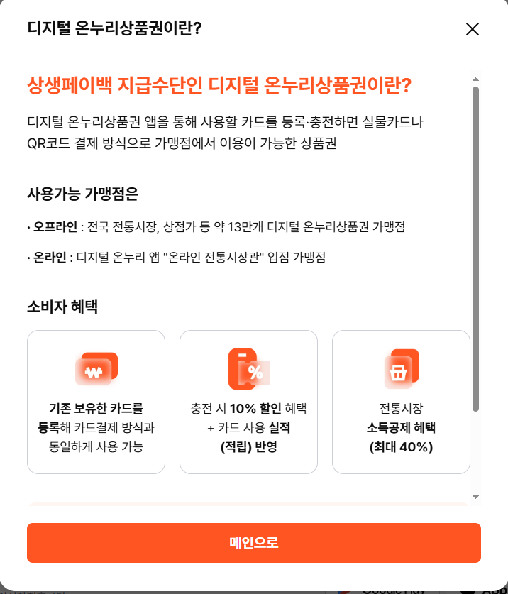 상생페이백은 디지털 온누리 상품권으로 지급이 됩니다.