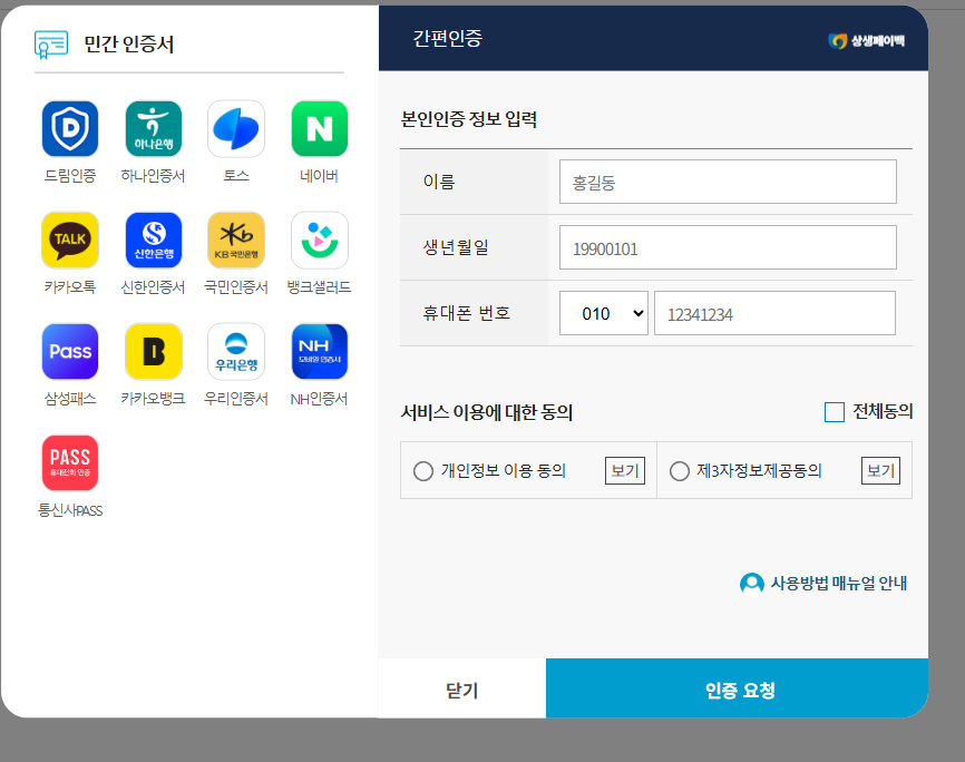 저는 간단하게 민간인증 중에 카카오톡 인증으로 진행을 했어요!