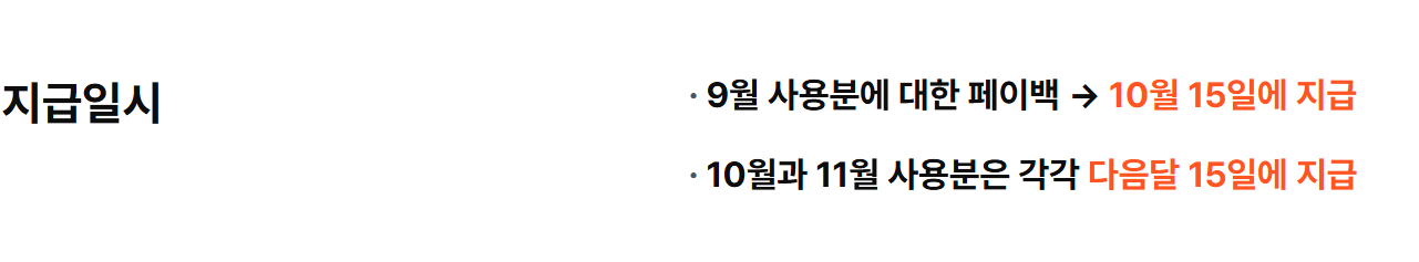 상생 페이백 지급은 익월 15일에 지급됩니다.