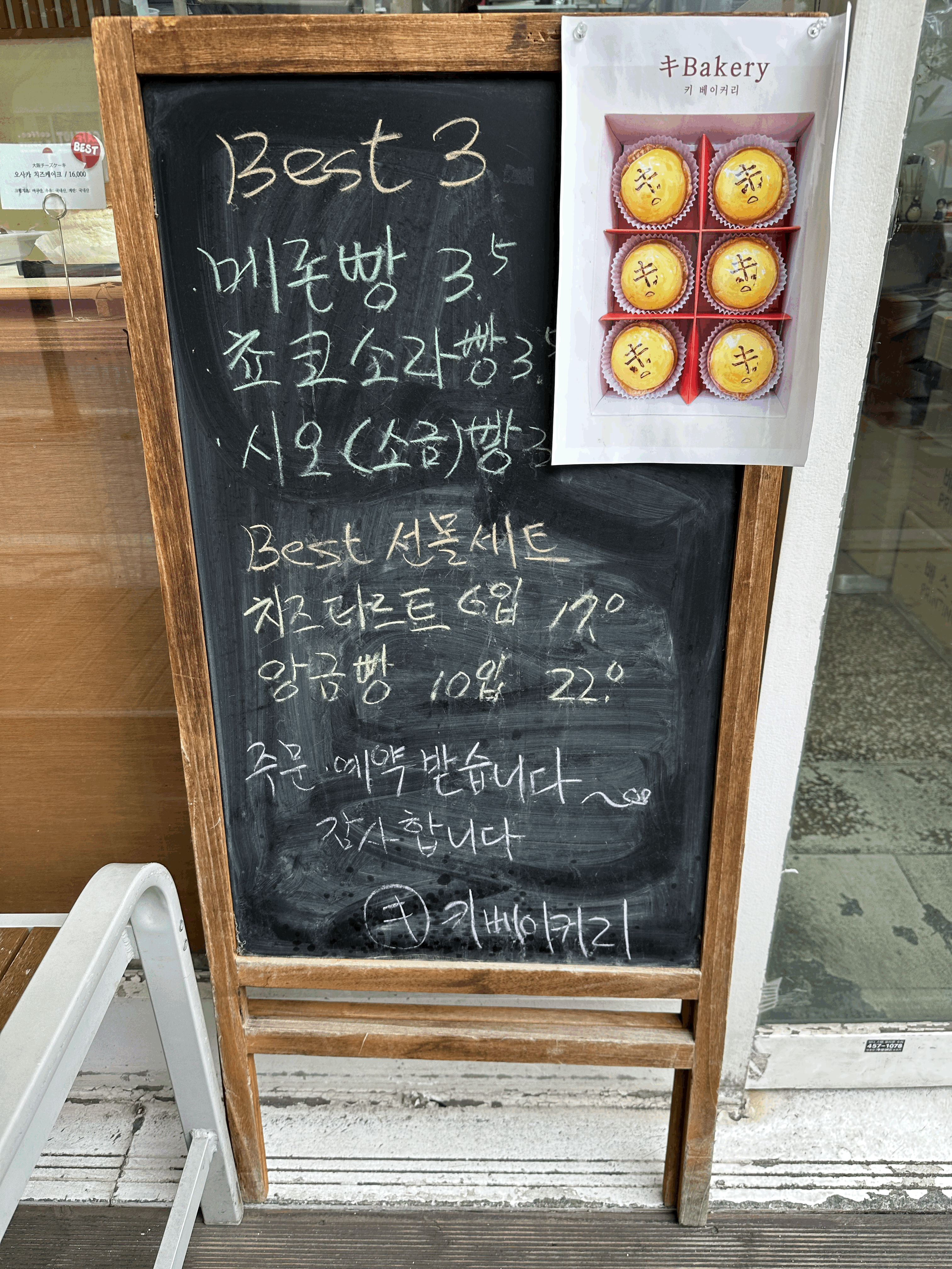 베스트 메뉴는 메론빵, 초코소라빵, 시오빵, 치즈타르트 이렇게 유명한가봐요.