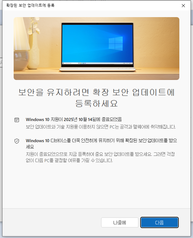 윈 11 업데이트 말고 1년 보안 연장을 하면 된다고 해서 찾아봤는데 그것도 14일까지 해야 된다는 거예요ㅠㅠ