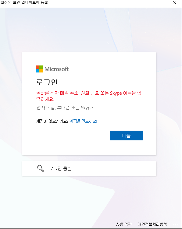 보안 연장을 하기 위해서는 마이크로소프트 계정이 꼭 필요해요.