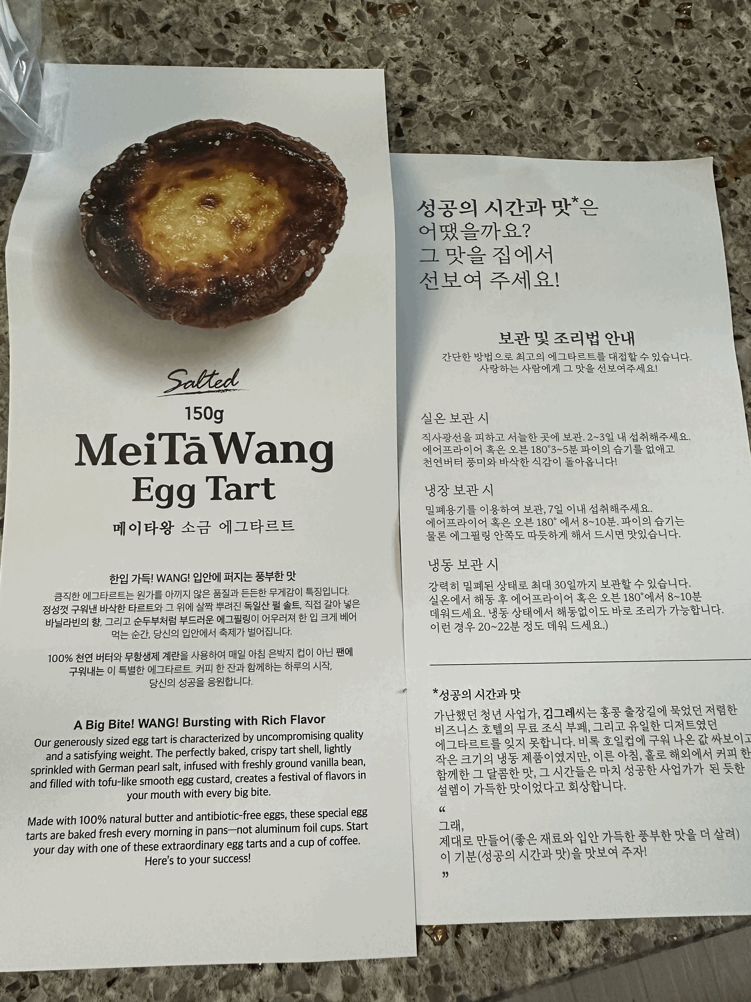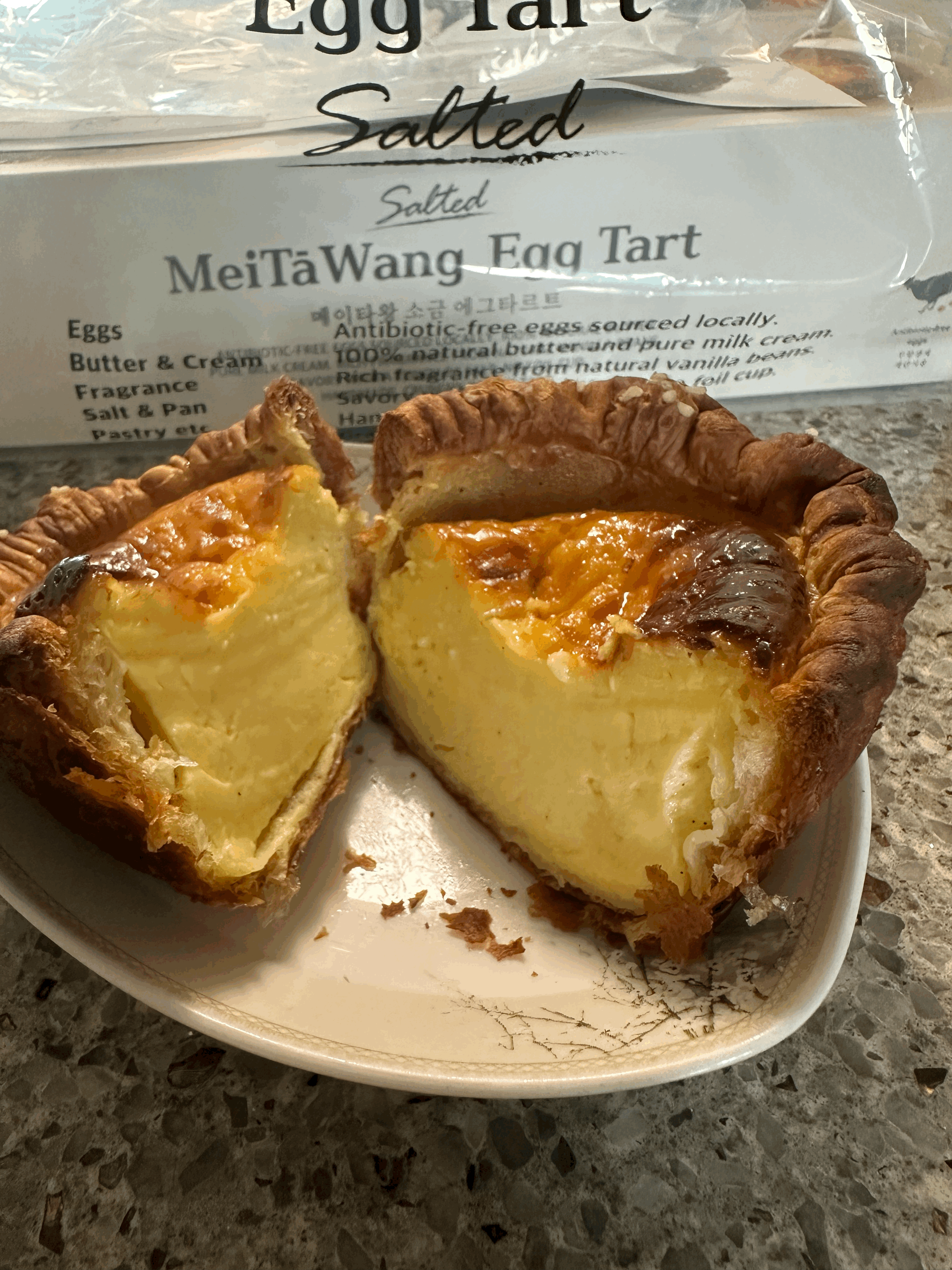메이타왕 에그타르트 재료는 100% 천연 버터, 무항생제 계란, 독일산 펄 솔트, 바닐라빈, 동물성 크림입니다.