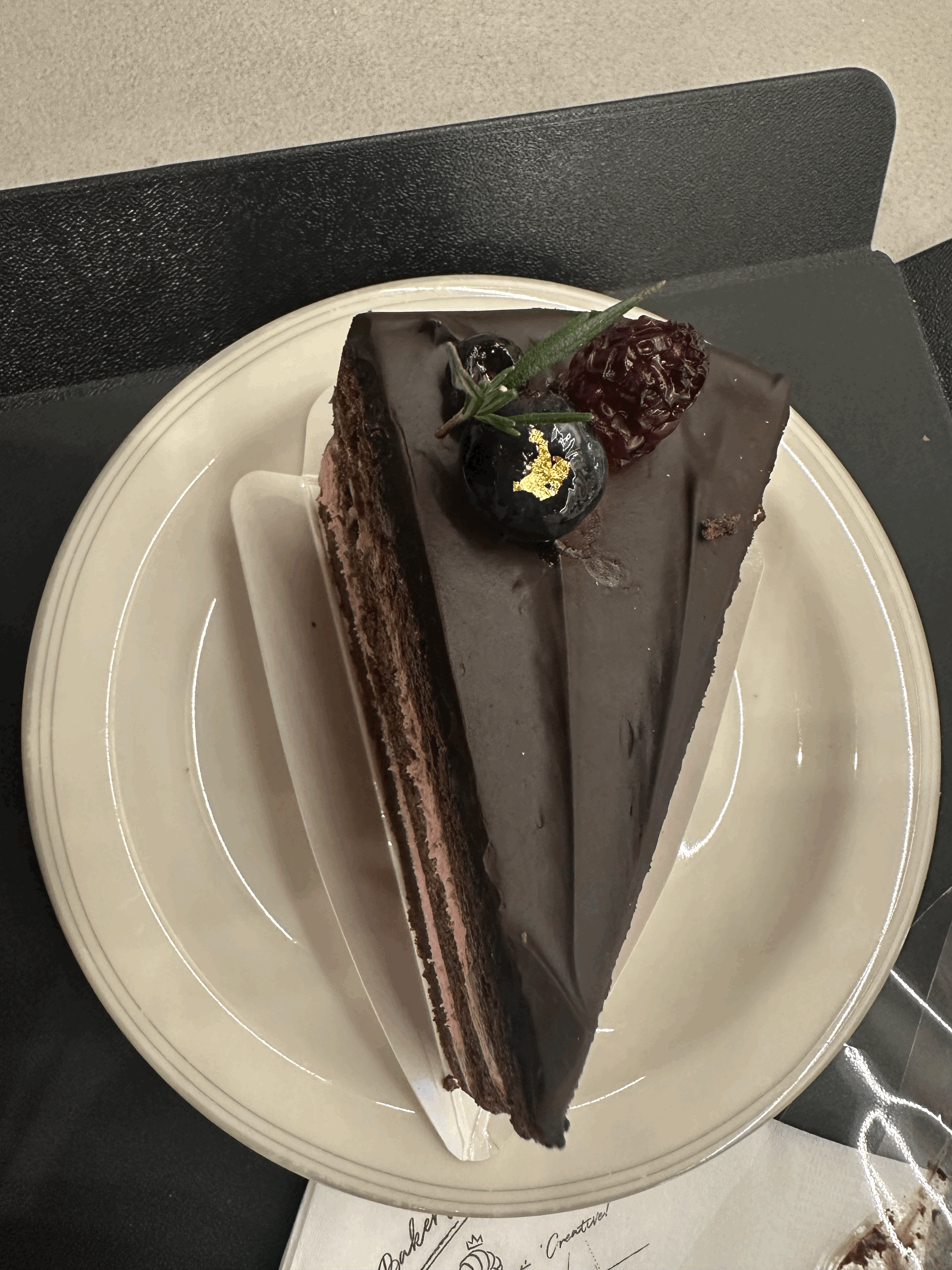 진한 초콜릿이랑 상큼한 딸기 크림이 진짜 잘 어울리고 너무 맛있었어요.
