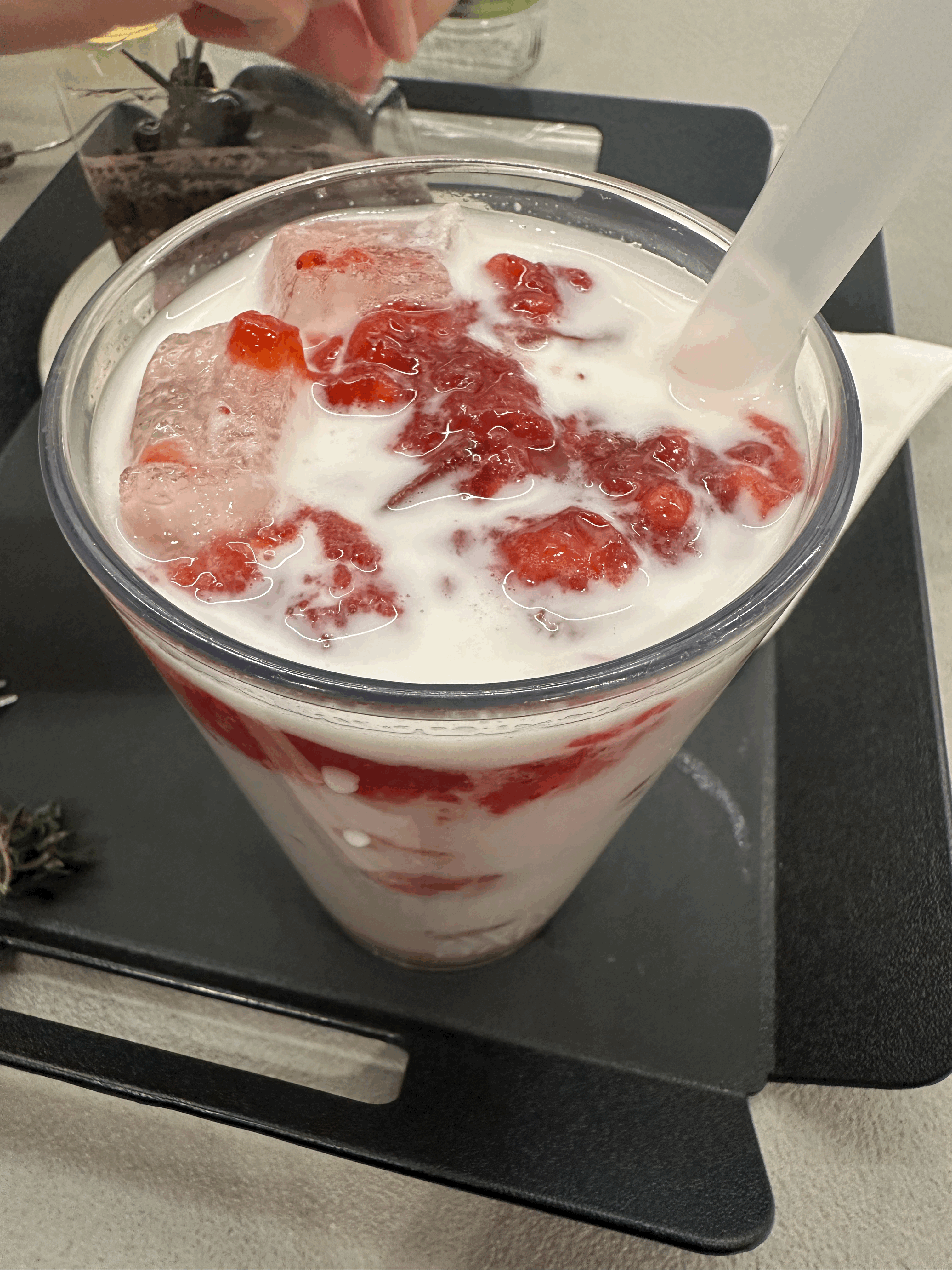 딸기라떼에 딸기청이 진짜 많이 들어가 있어서 진짜 달고 맛있었어요.